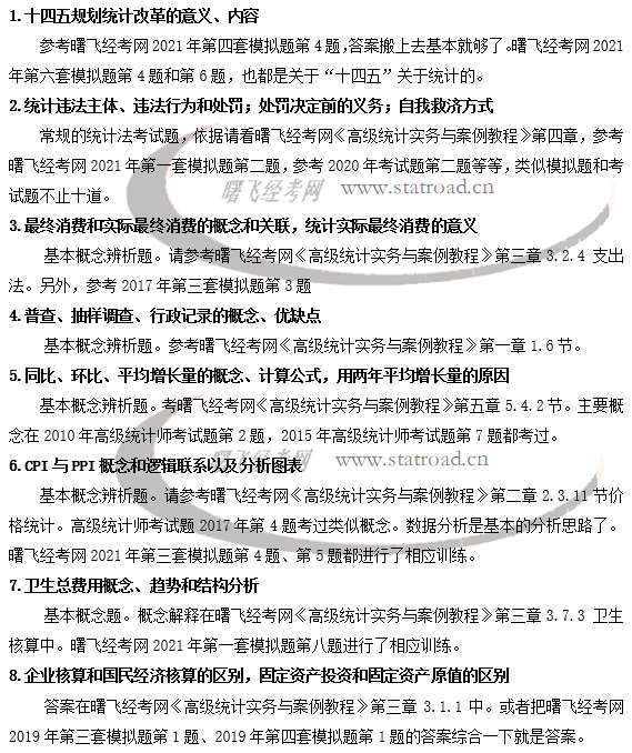 2021年高级统计师辅导方案